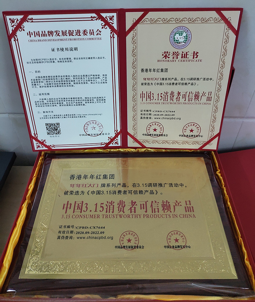 2001年:年年红非标门荣获消费者最满意产品 |