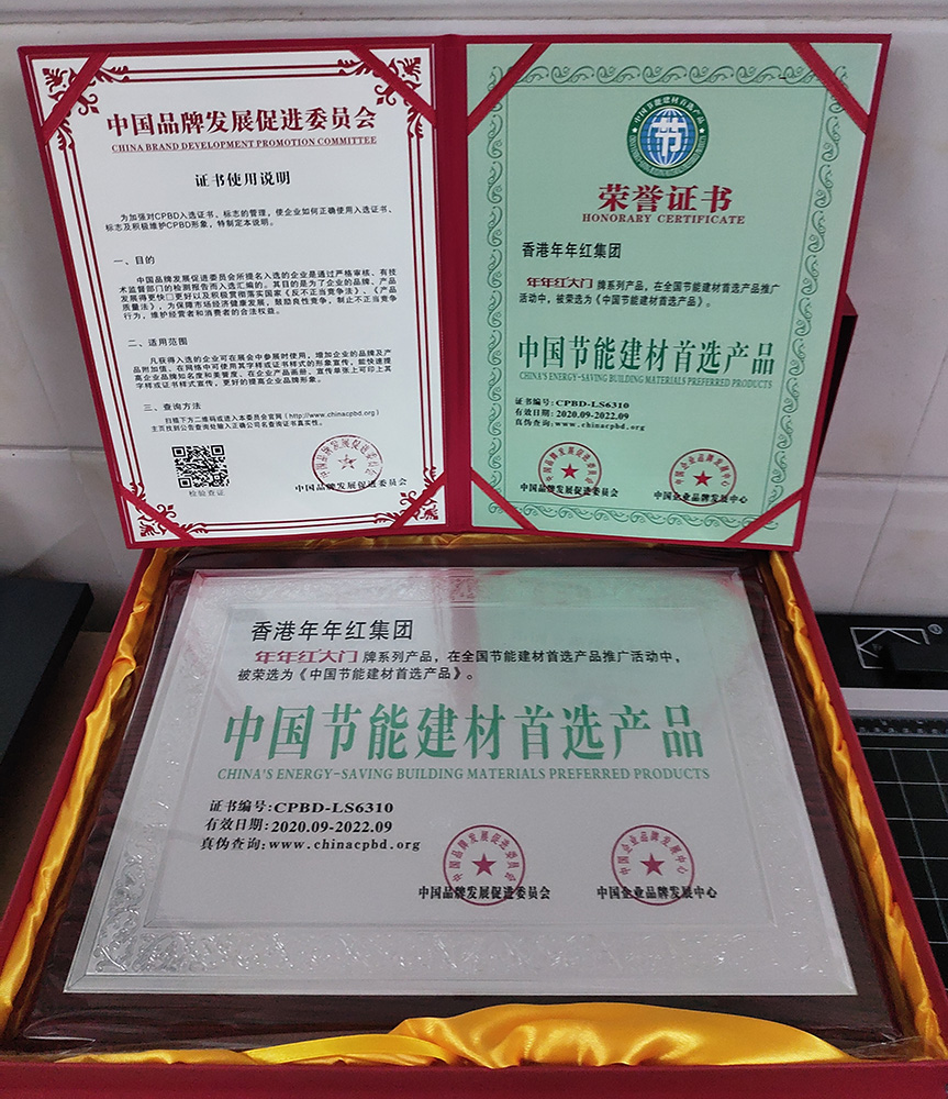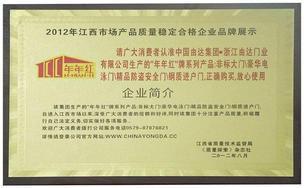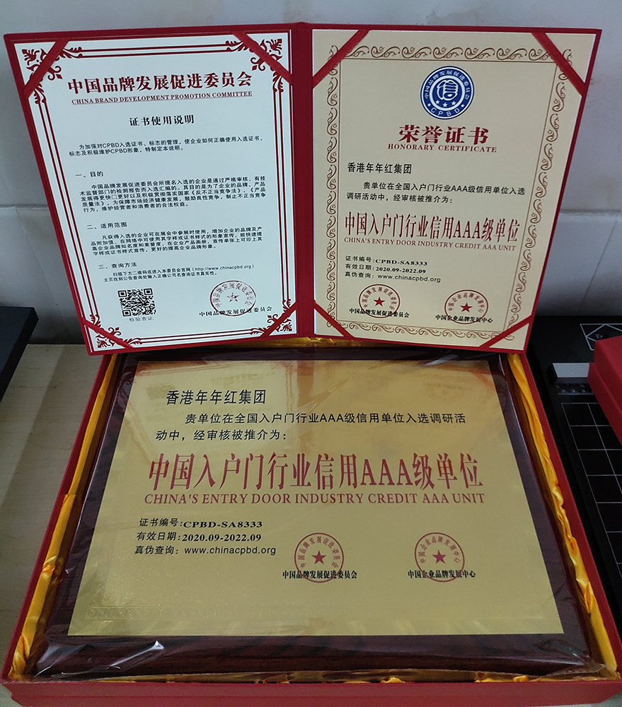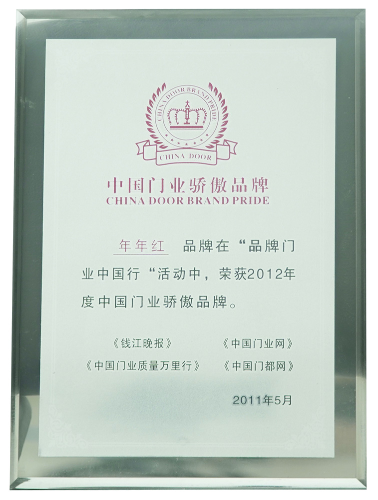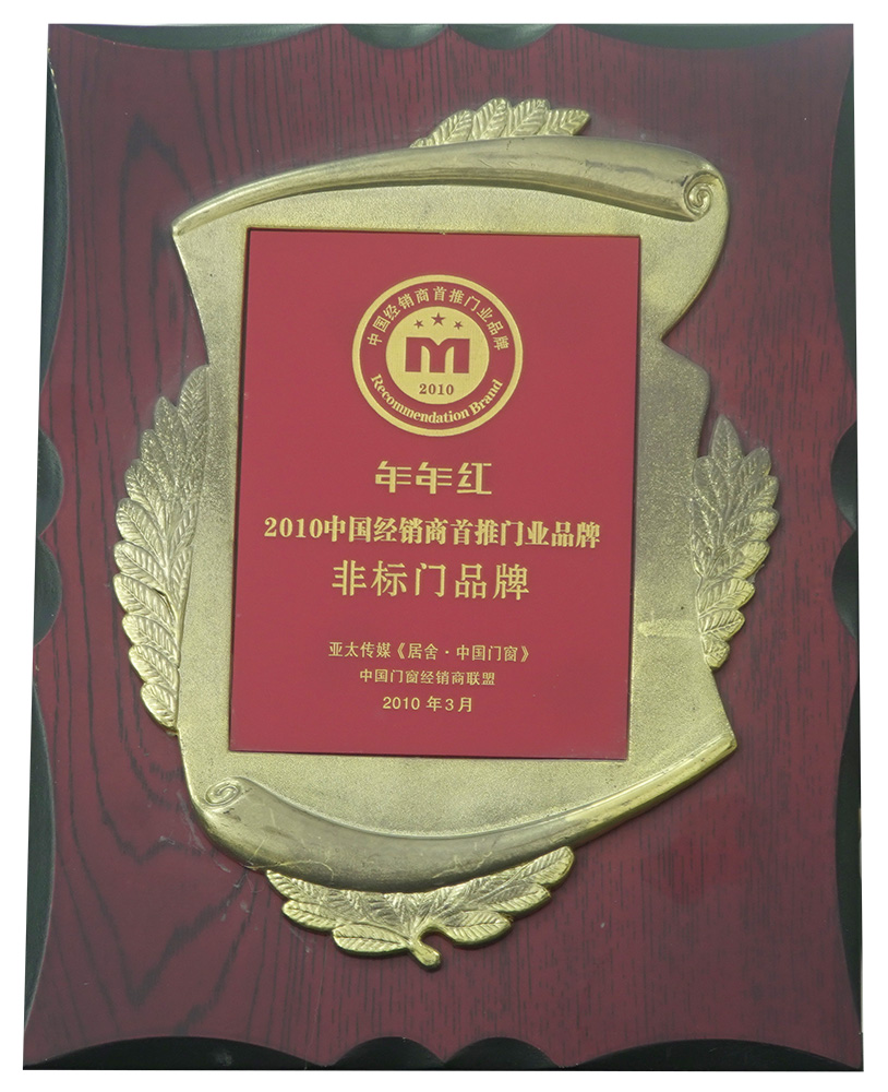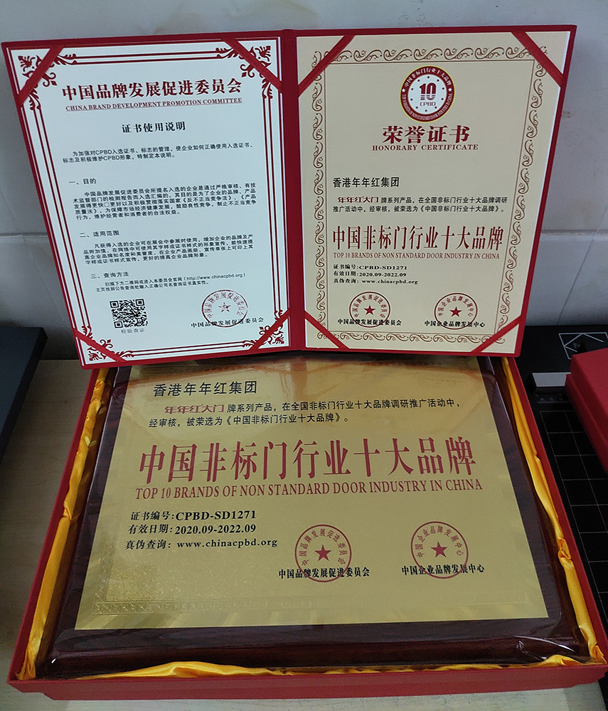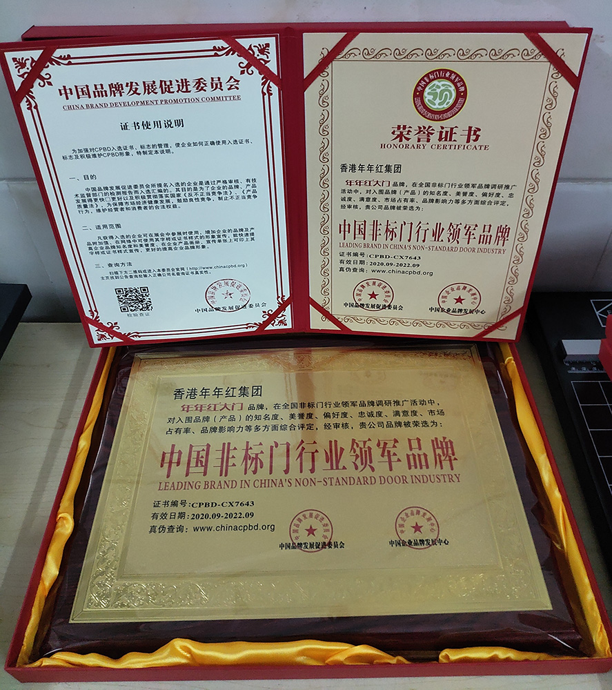 2004年:年年红非标门首家创新使用户外转印漆工艺,使非标门户外抗晒能力大大增强 |
