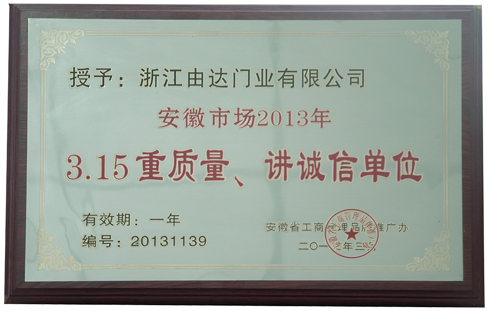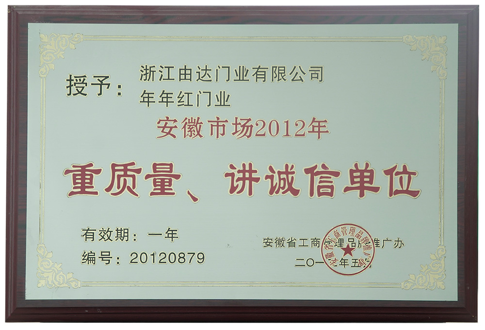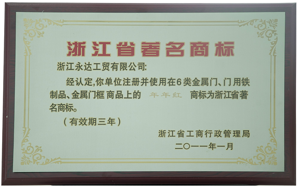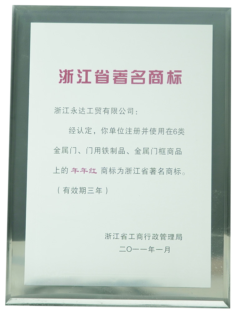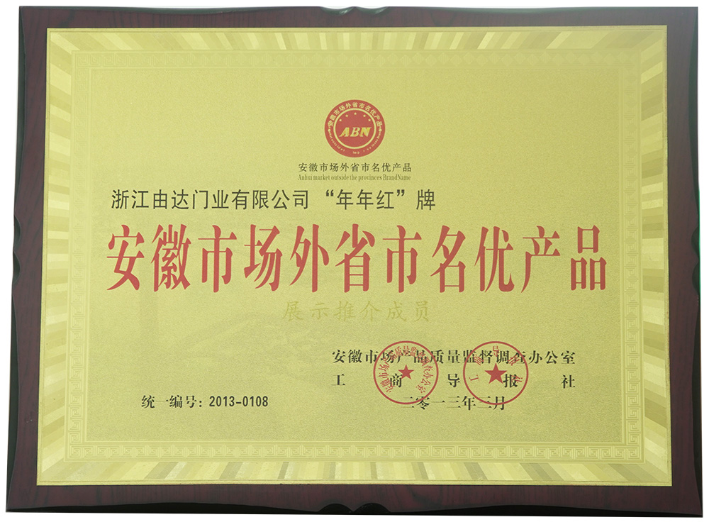 2005年:年年红门业扩大厂房规模,迁址浙江武义制造基地,占地15万平凡米,成为行业龙头企业,纳税百强企业 |