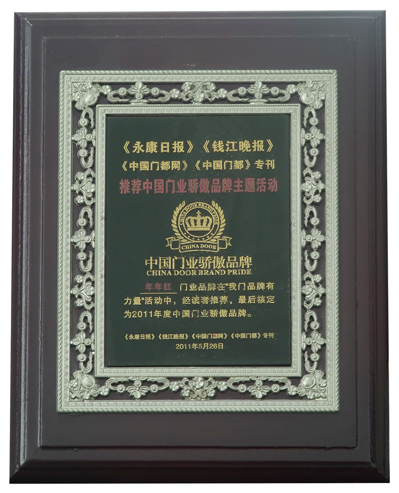 2002年:年年红非标门荣获行业标杆品牌 |